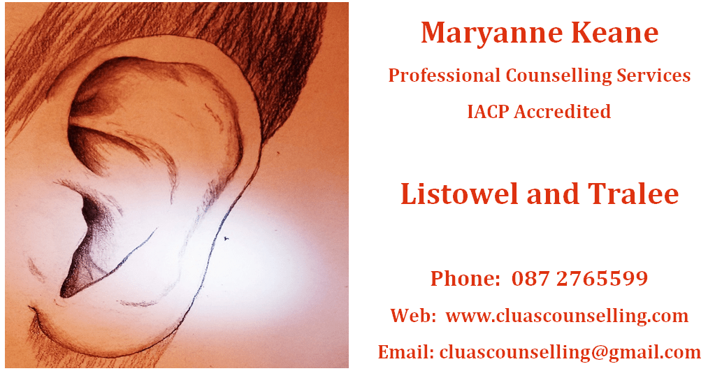 Hello, I’m Maryanne and welcome to my website where I will introduce myself and the Counselling services I provide in Tralee and Listowel. If you would rather talk to me, please feel free to ring me and I will answer any questions you may have.